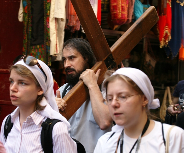 Some choose to carry a wooden cross to better experience the suffering of Jesus on his way to the crucifixion site.